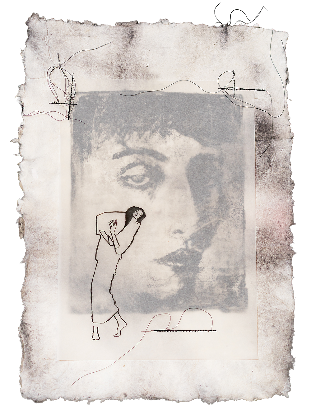 Selbst geschöpftes Papier aus Japanischem Maulbeerbaum I Acryl-Monoprints aus eigenen Fotografien I Stempeltechnik I Tusche I Kohle I Colagetechnik mit Transparentpapier und textilen Komponenten I Nähmaschine ... Ich probiere möglichst viele Dinge aus!